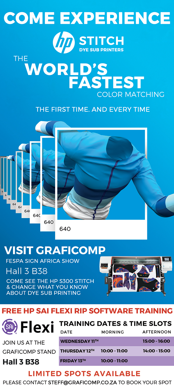 Graficomp showcasing the HP Stitch Dye Sub Printer |