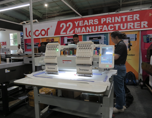 Also showcased was the company’s large format printer with an i3200 printhead, as well as a two head embroidery machine.