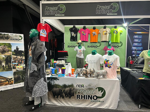 ‘The Rexx team have opened a whole new world for us – a completely new stream of revenue that we would never have had and would never have been able to afford. We started off by joining them at the Sign Africa Expo in Johannesburg initially, once a year. They demonstrate their printing machines at these shows and instead of printing random images, they got their team to create the most incredible rhino designs, so when they did their demonstrations, they printed rhinos onto T-shirts and gave Project Rhino the opportunity to sell these shirts to support us to raise funds for our projects.’