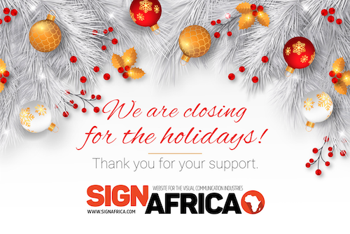 Thank you to our valued readers and advertisers for your support during this year. Sign Africa will be closing on Friday 12 December 2025 and will be opening on Monday 12 January 2026. Wishing you and yours a safe and relaxing break.